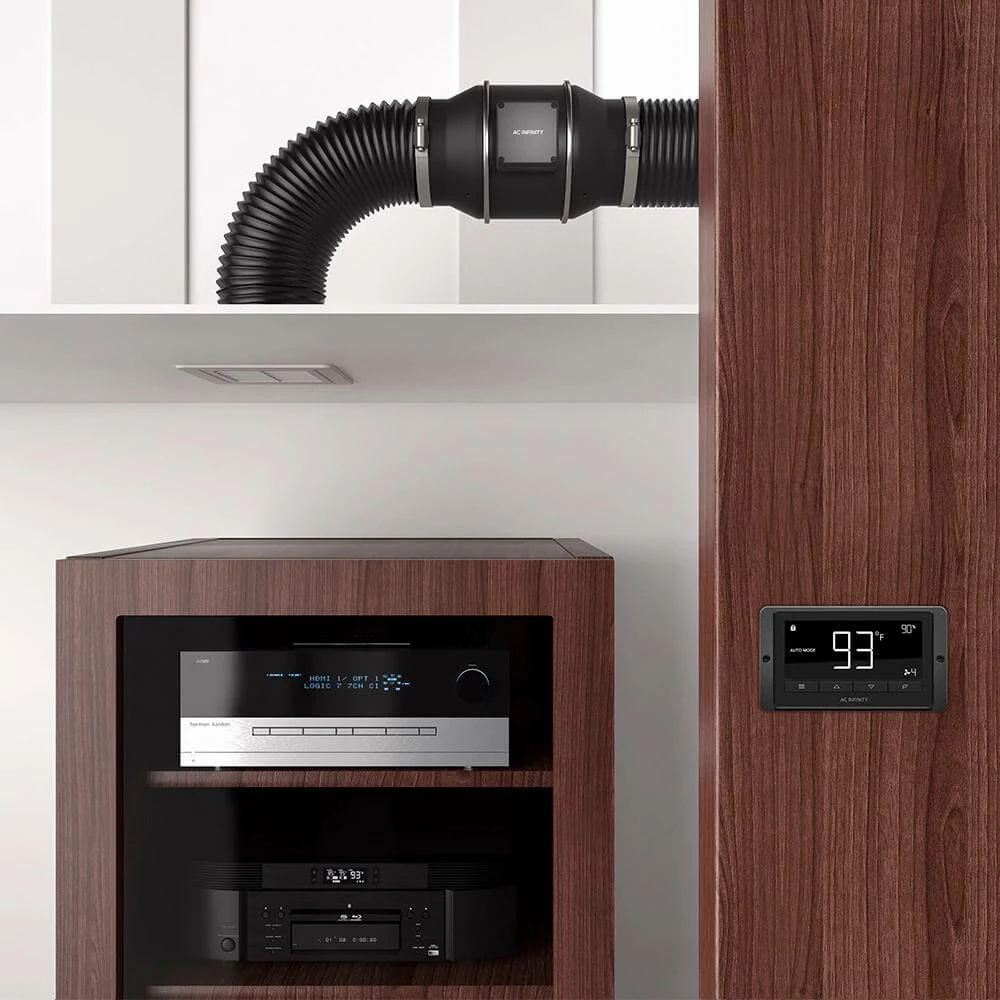 This quiet duct fan system is popular in a variety of applications including cooling AV equipment rooms, closets, racks, and cabinets. Due to its low noise and advanced control features, it’s also used in various air circulation and ventilation projects including hydroponic grow rooms and tents, exhausting bathrooms and attics, and other installations.