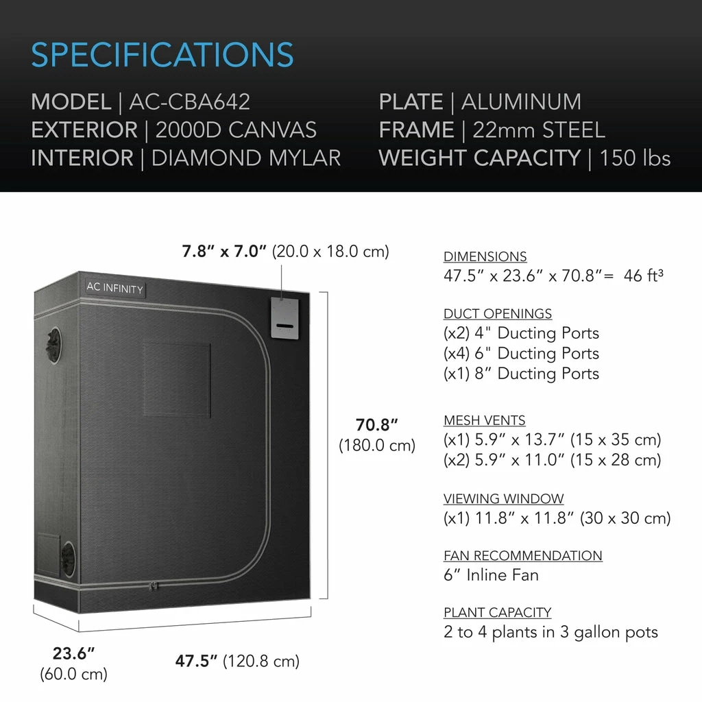 - 1 x AC Infinity CLOUDLAB 642 Grow Tent | 2’x4′