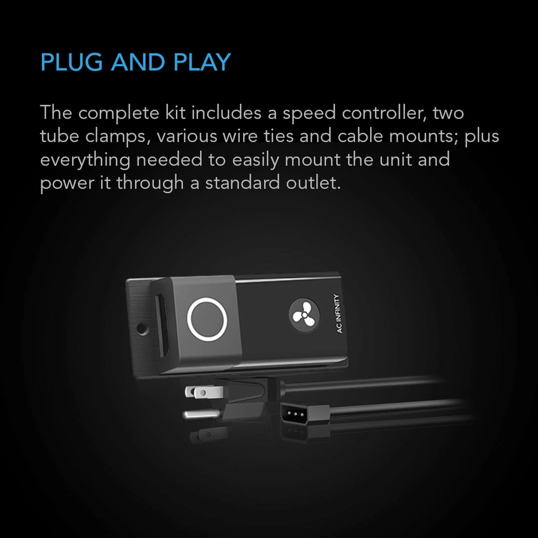 Optional Upgrades-๏ปฟ This fan (S8) comes with a speed controller, adjustable from OFF, and when on, from speeds 1-10. The T8 inline fan comes with an LCD screen and additional capability allowing for temperature and humidity thresholds to be set, and as such the fan turning on/off at these thresholds. For example, if you want your T8 to kick on when temps hit 85ยฐ and off when it hits 75ยฐ then the upgraded T8 inline fan is the one for you! If you just want to constantly have the fan set to full speed then the S8 will do the trick!ย The inline fan (S8/T8) is the same, the only difference is the LCD controller with the temperature and humidity sensors!