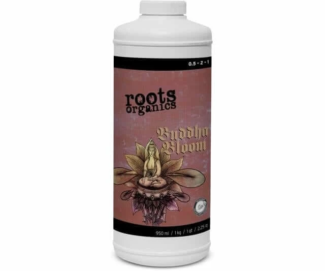 Roots Organics Buddha Bloom is a one part organic flowering nutrient formulated for potting soil and potting soilless gardens.