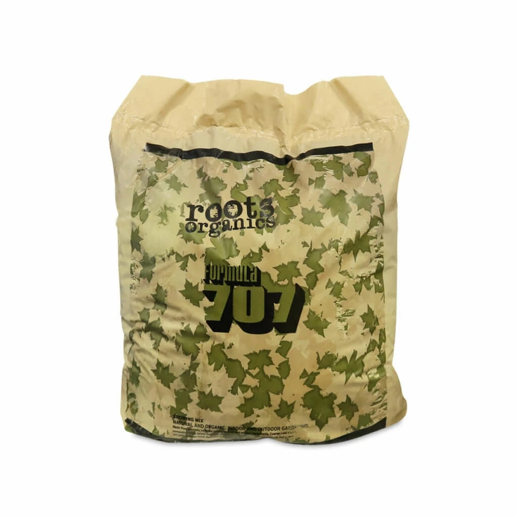 Roots Organics Formula 707 is a ready to use soil created for a special kind of gardener: one who wants to control his own destiny. Formula 707 is different from the other potting mixes. It was designed with greater water holding capacity, less nutrients, less perlite, and less pumice, alongย with specific ingredients for large container gardening. Just punch holes in the bottom, cut off the top, and plant.